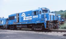 Former PC 2642/PRR 2542 stored in the deadlines at Altoona, PA on 7/13/1985.