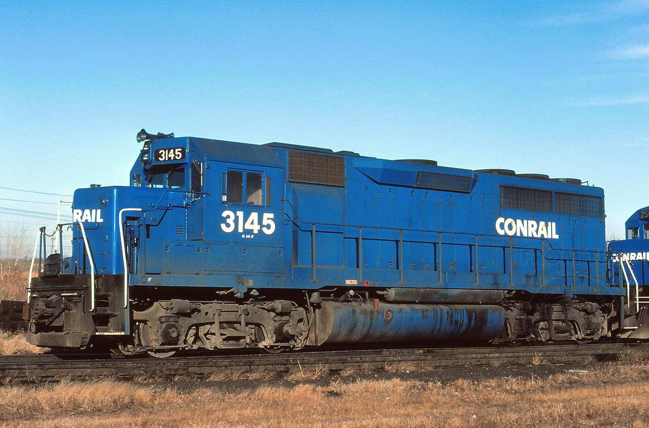 Former PC 3145 was at Riverdale, IL on 11/28/76. Note that on the cab it is stenciled as a "G 40 P". It was sold to KCS 770 in 9/83 and was wrecked shortly after in Wheelan, LA on 11/16/83 and scrapped.