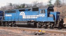 Former PC 3206 was on an eastbound at Belmont Jct, Phila. PA on 3/3/84. Unit was rebuilt 11/93 at Juniata to GP40PH-2B NJTR 4200 for passenger service.