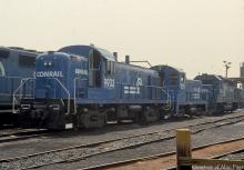 CR GP-40 3213 teams up with RS-3M 9933 and NW-2 9219 at the Secaucus engine terminal in August, 1979.