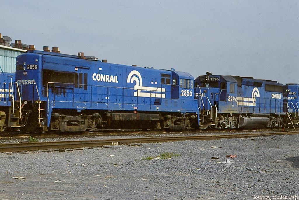 CR GP40-2 3296 mixes it up with the U-boats at Selkirk in August, 1979.