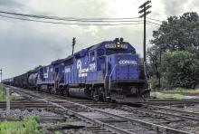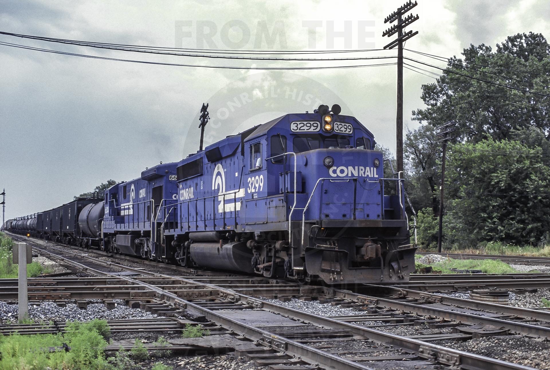 CR 3299 EMD GP40-2 leads CR 6604 GE C30-7 westbound on the BRC, crossing the B&OCT at Forest Hill Junction in Chicago IL