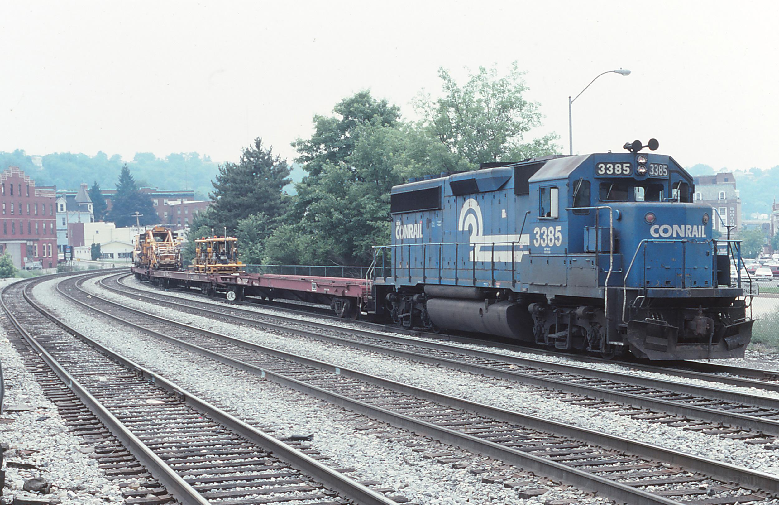 CR 3385 is seen on CSX W035 at Cumberland, MD on 6/29/96 .