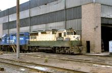CR GP-35's 3636 and 3683 (ex-EL 2577) outside the Morrisville locomotive shops in February, 1979.