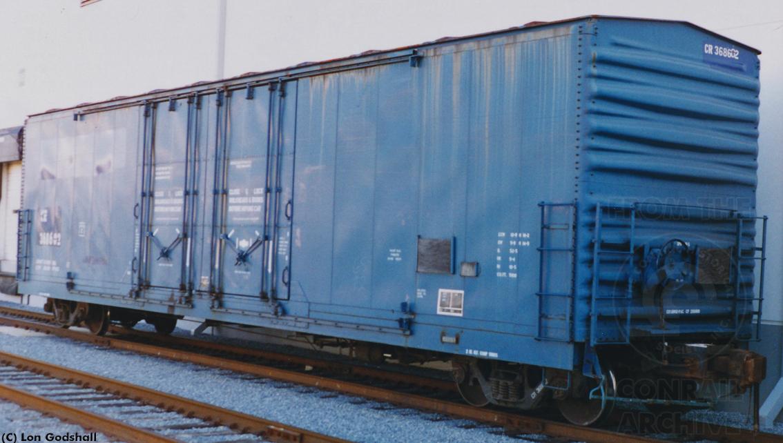 Previous Next CR 368602, which is ex-USLX 17097, is seen here in late 1998. Car was built Sep 1972. Photo By Lon Godshall Equipment Type ex-USLX 50' Boxcars Conrail Number 368602 Collection CRHS Conrail Photo Archive Contributions