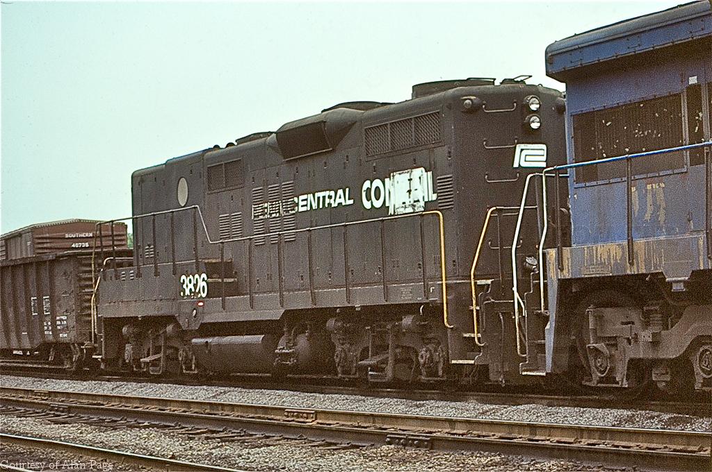 CR GP-9B 3826 follows U33C 6565 (ex-EL 3302) at Abrams in June 1979.