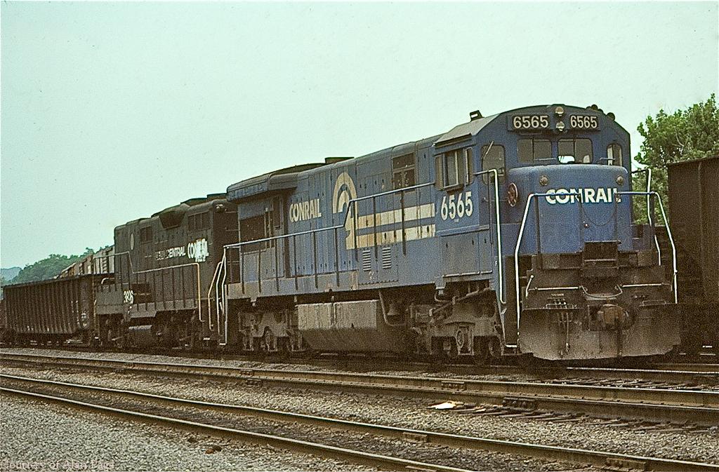 CR U33C 6565 (ex-EL 3302) leads ex-PC GP-9B 3826 at Abrams in June, 1979.