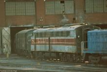 Just over a year after beginning Conrail operations, ex-NYC F-7A's CR 1775 and 1762, and CR E-8A 4006 (ex-EL 816) await maintenance or parts removal outside the Juniata shops.
