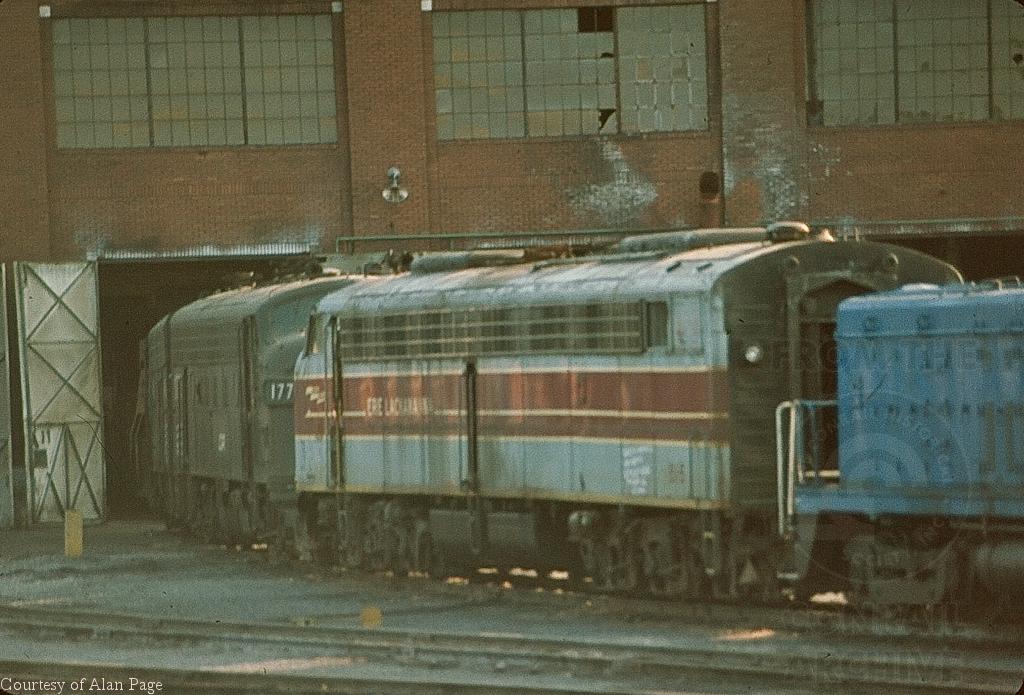 Just over a year after beginning Conrail operations, ex-NYC F-7A's CR 1775 and 1762, and CR E-8A 4006 (ex-EL 816) await maintenance or parts removal outside the Juniata shops.