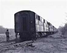 April 18, 1976, only 17 days after Conrail start up. Exactly 42 years ago! Dead line of 10 white lined E units, Morrisville, Pa. NYC 4019 is here at the end. Other units were 4015, 4221, 4235, 4095, 4067, 4259 and 3 more. Wish I had taken shots of each unit but oh well. Doubt if any of these were renumbered for CR.