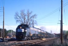 CR OCS301, a shipper's special designated the "Constitution State Special", roars southward on the Amtrak Springfield Line at Windsor Locks, CT. on May 3, 1990.