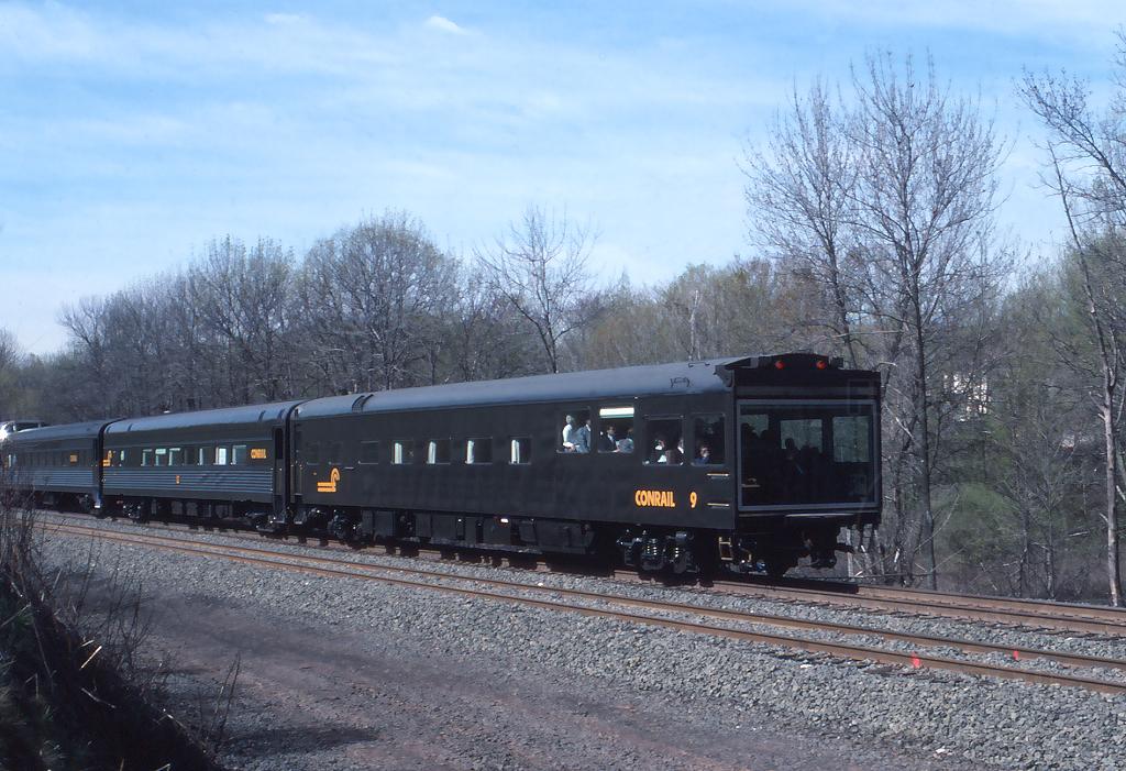 Previous Next Theater car #9 at the rear of OCS301 in Meriden, CT. on May 3, 1990. Photo By Carl Weber Year 1990 Original Date 5/3/90 Location Details Hicks Ave. Conrail Number 9 Additional Galleries Carl Weber's ConRail in Connecticut Subject(s) OCS Passenger Equipment Line or Locale Conrail on the Northeast Corridor Collection CRHS Conrail Photo Archive Contributions