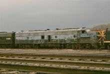 CR E-8A 4073 (ex-NYC) rests in the Juniata shops deadline in March, 1978.