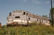 Looking more like a monument, then a decaying, retired locomotive, NYC E-8A 4093 rests in the Juniata shops deadline in August, 1977.