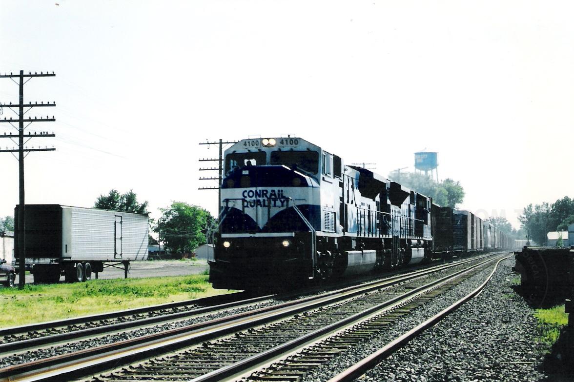 STIN-7 with the class SD80MAC, 4100, on the point at Union City, OH on May 27, 1999