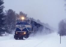 A quartet of "MAC's", led by the 4102, take BOSE through Ballou's in Washington, MA. on New Year's Eve, 1997.