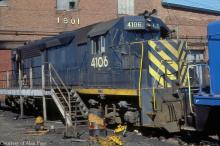 CR-operated NJDOT GP40P 4106 (ex-CNJ 3677) awaiting service at Elizabethport, NJ in February, 1979.