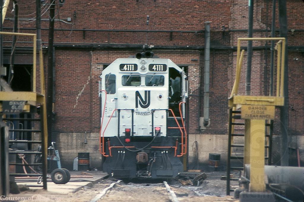 CR-operated NJDOT GP40P 4111 (ex-CNJ 3682) receiving service at Elizabethport shops in July, 1981.