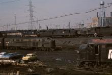 A busy engine terminal at South Amboy in March, 1978 shows E-7A 4244,
