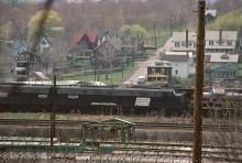 PC E-8A 4248 rests between sister-unit 4255 and EL RS-3 1053 (CR 5269) in the Altoona deadline in March, 1978.