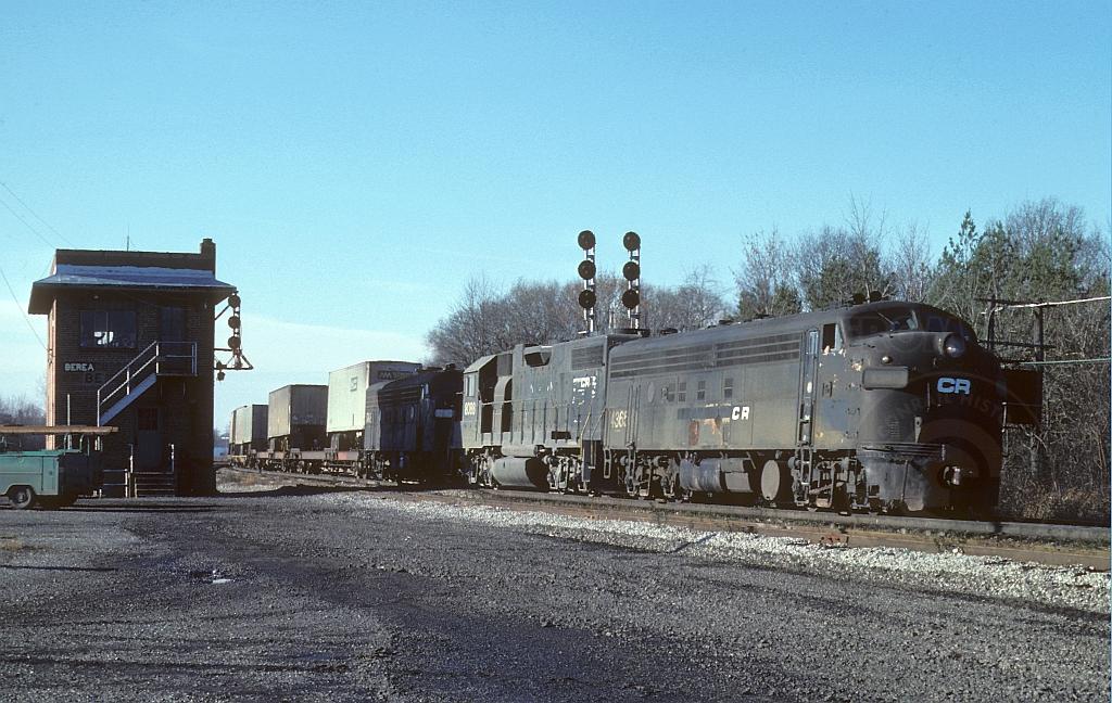 One of those sweet early Conrail consists brings a Columbus to Collinwood van train past Berea tower. Even with the sun not being "just right" I had to shoot this FP7A/GP38/F7A set.