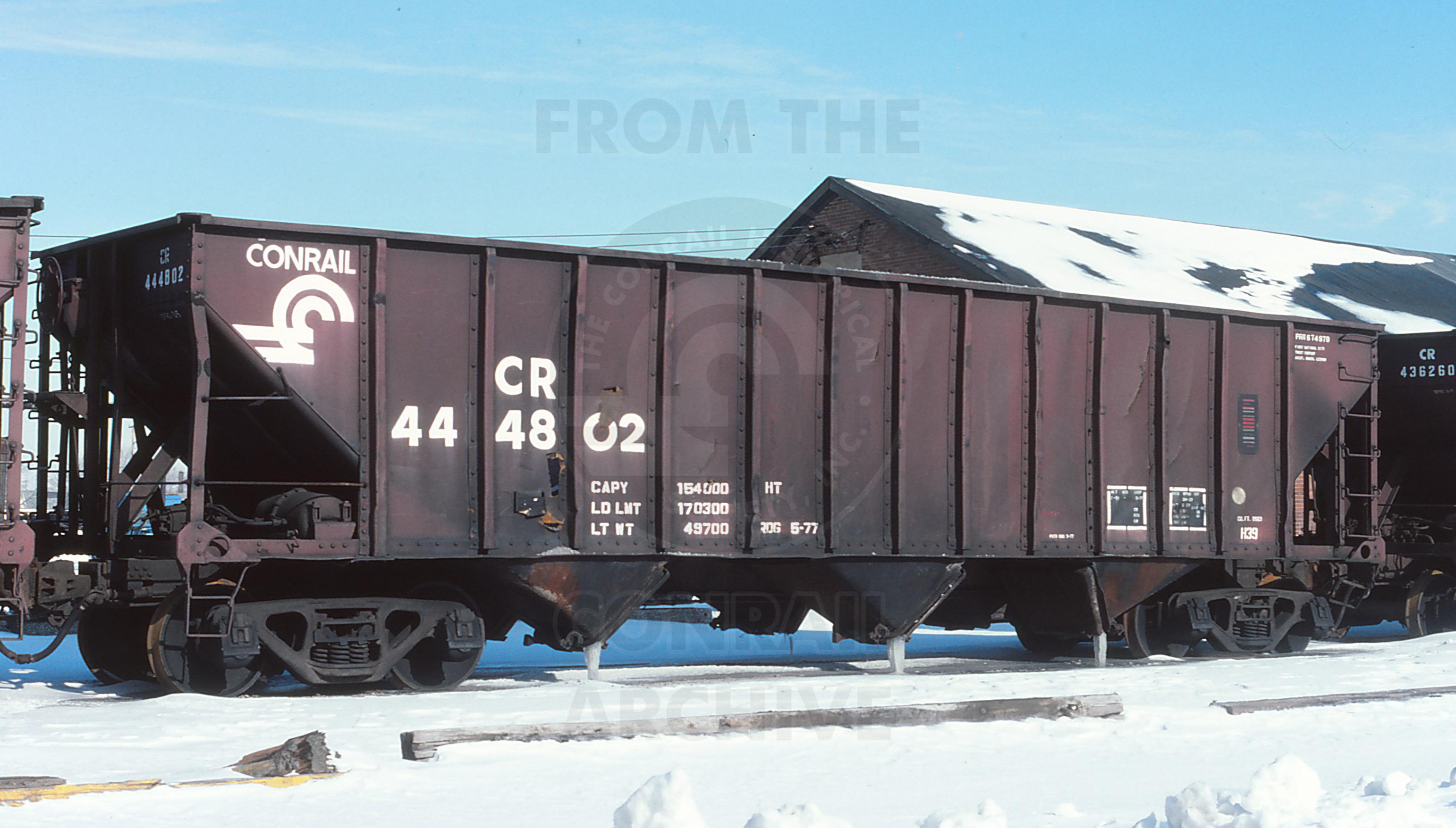 CR 444802 is seen at Cleveland, OH on 2/8/82. Car is ex PRR 674979 and was painted RDG 5-77.
