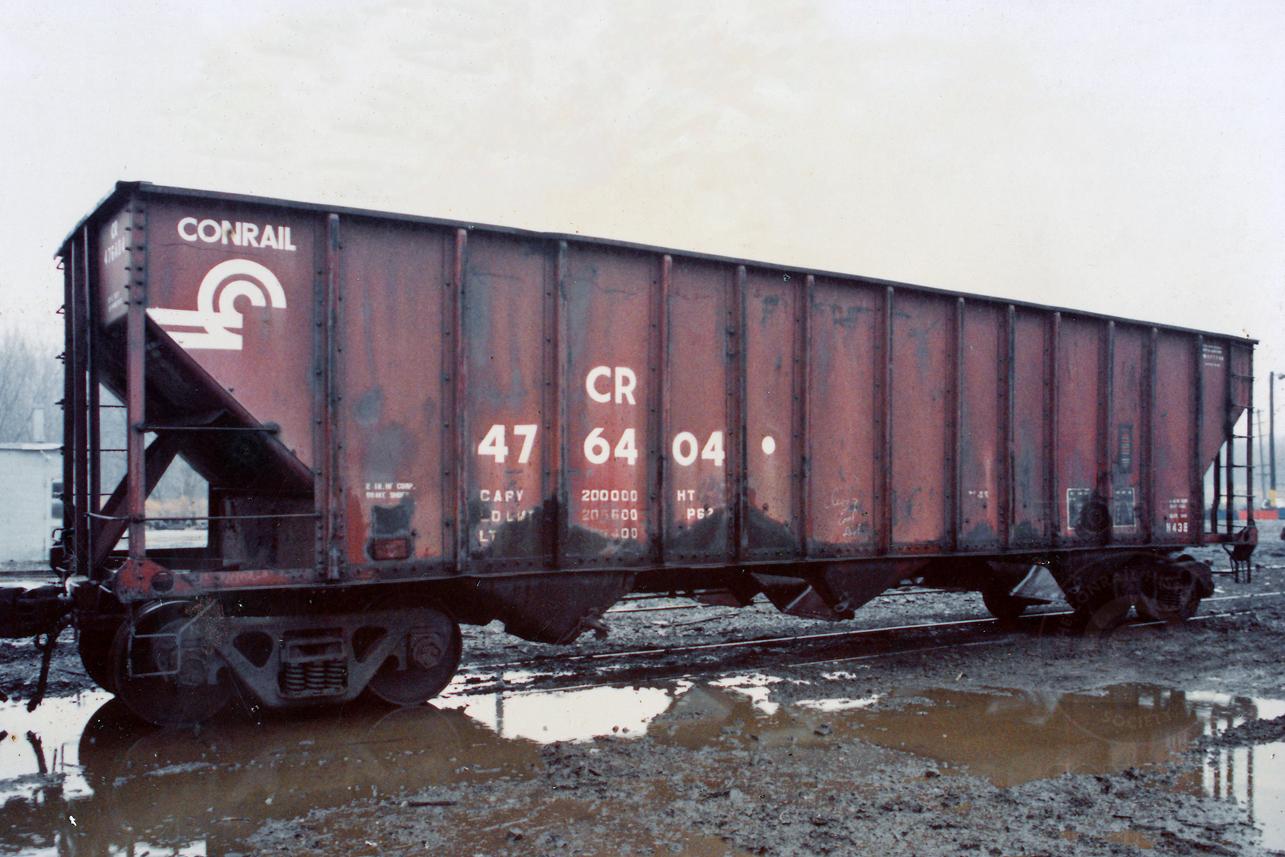 Car is ex PRR 227708 and was built 10-65. Pictured here likely in late 1989 near the reclamation shop in Hollidaysburg, about to be cut down to the frame for the new coalporter program. It was rebuilt 2-90 into CR 503004 class G52H coalporter. Color print scan.