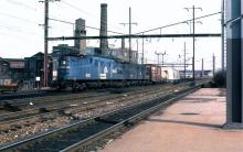 GG1 4800 rolls a westbound through the station at Frankford Junction.