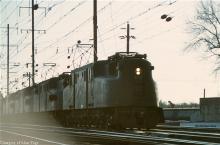 CR GG-1 4825 runs second behind 4889 in a quartet of G's on the NE Corridor at Morrisville in March, 1977.