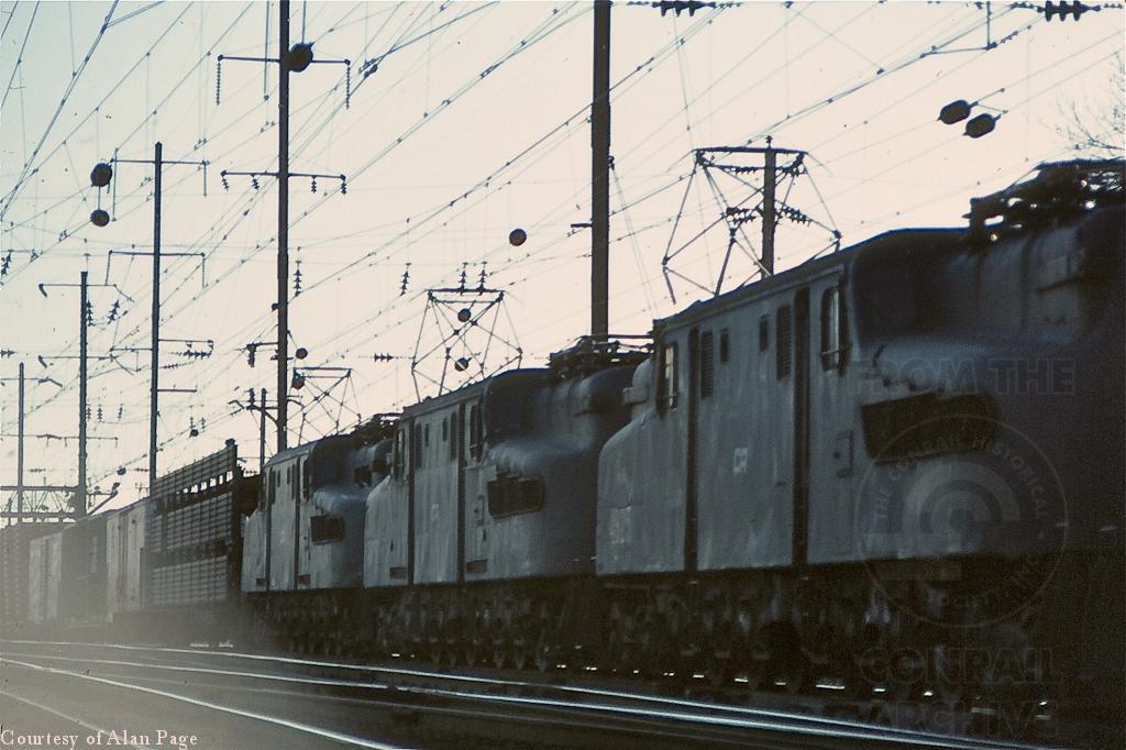CR GG-1 4825 runs second behind 4889 in a quartet of G's on the NE Corridor at Morrisville in March, 1977.