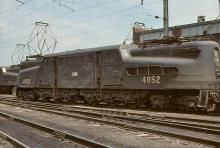CR GG-1 4852 waits between assignments alongside E-44's at Enola in May, 1977.