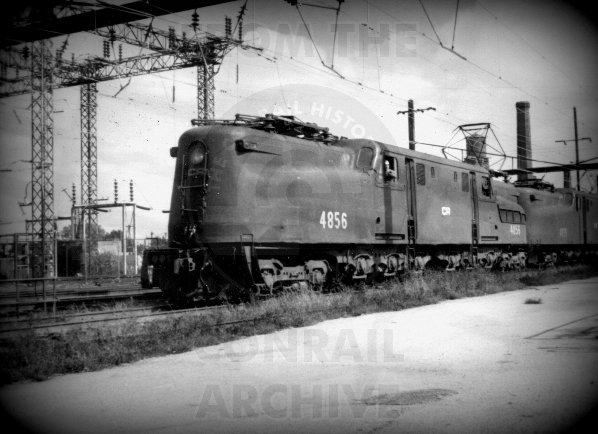 Conrail GG-1 #4856 + 1 are ready to lead a westbound at Frankford Junction in Philadelphia, Pa. October 1977