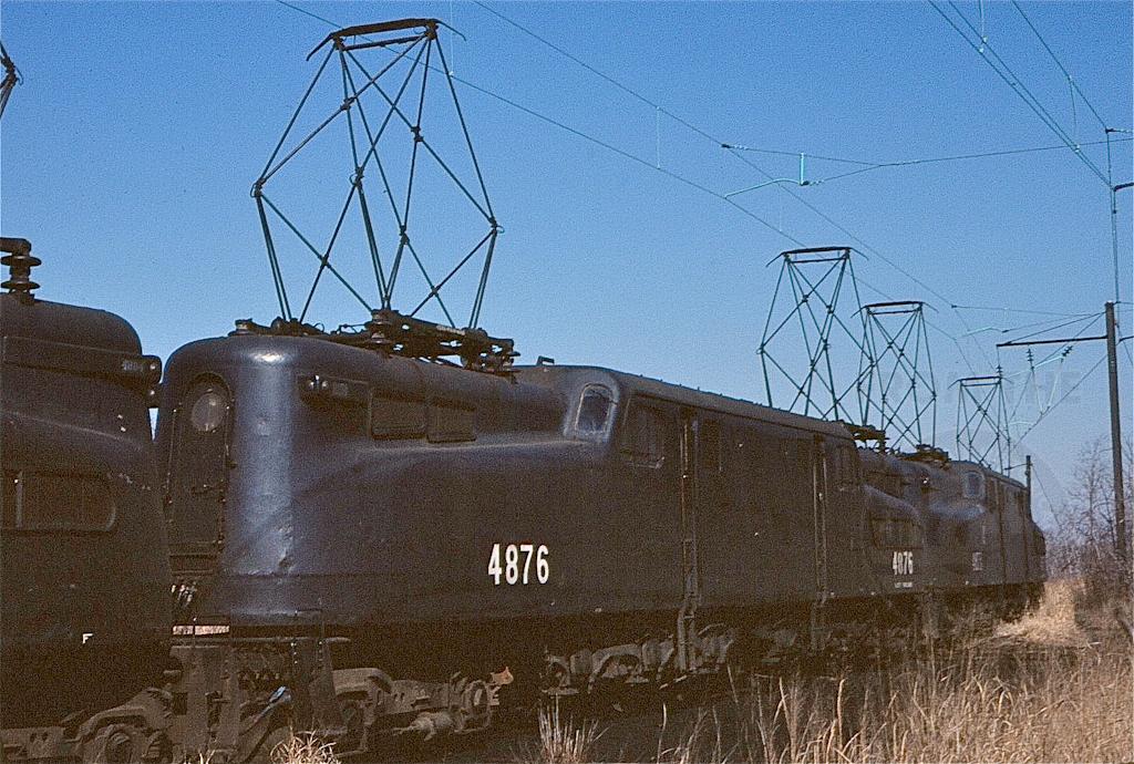 NJDOT GG-1 4876 and two other black G's wait for their next run out of South Amboy in March, 1982. CR retired their freight fleet of GG-1's in 1979, but the NJDOT-contracted GG-1's 4872-4884 saw their operating days extended to the fall of 1983.