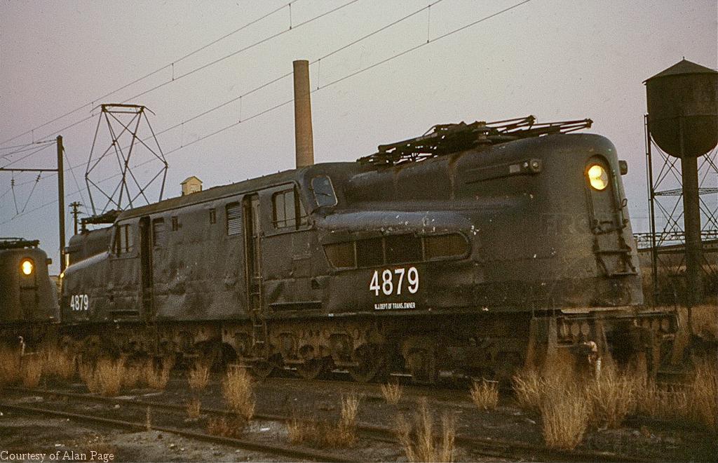 At dusk in November, 1978, CR-operated NJDOT GG-1 4879 waits for her next run out of South Amboy.