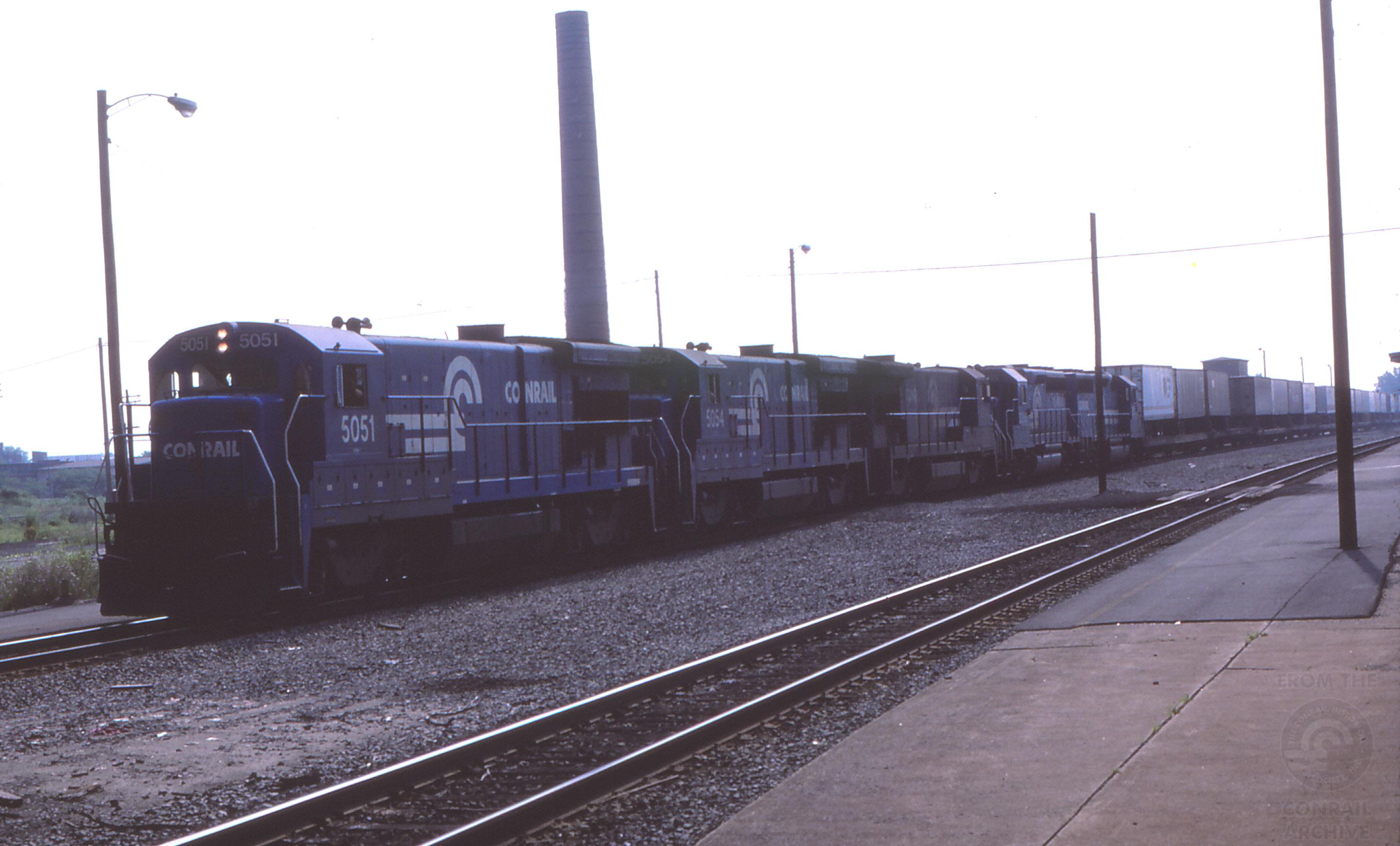 An unnamed TV train rolls past Utica station behind a power set consisting of three GE's and a pair of EMD's, a consist that would remain a constant over the years for CR trains on the Chicago Line. I have posted a number of photos from ten years later. It's hard to tell the time period by looking at the power.