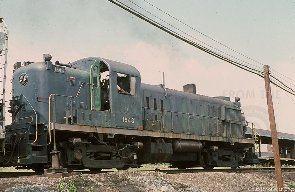 A hot day in July, 1977 has the crew of former CNJ RS-3 1543 (CR 5373) hard at work at Elizabethport, NJ.
