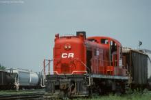 On a hot day in July, 1977, former CNJ RS-3 1552 (CR 5381), works the busy yard at Elizabethport, NJ.