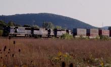 TV 202 with 116 APL platforms rolls past the pond along Watson Blvd.