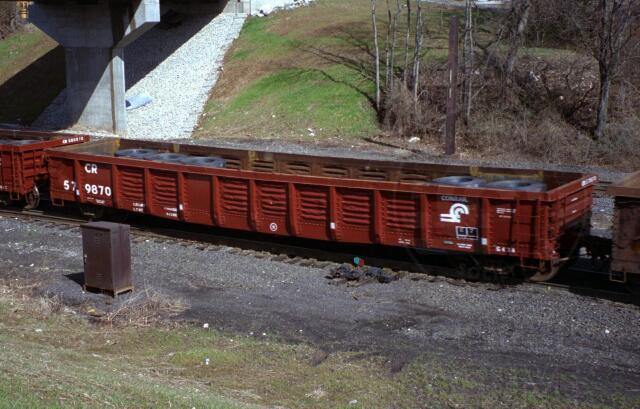 CR 579870is seen here in April 1996 in coil steel service on Conrail train PIMO.