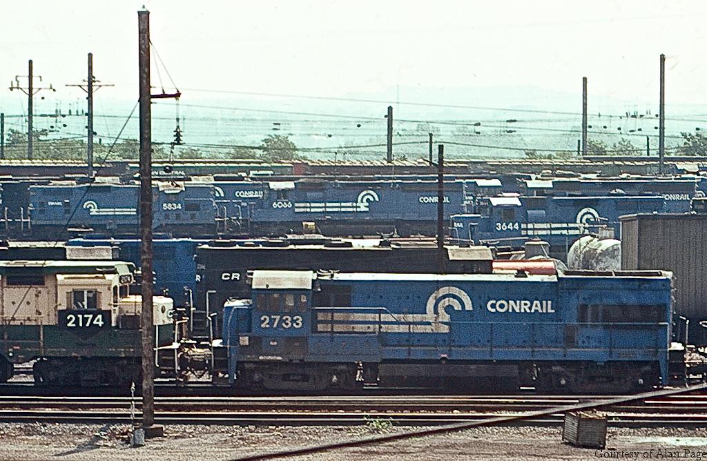 In a sea of locomotives at Enola in August, 1980, CR GP7 5834 (ex-RDG 632) is ined up with ex-EL SD45 6066 in the fifth line back from U23B 2733.