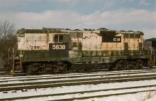 CR GP7 5838 (ex-RDG 636) works Abrams yard in March, 1978.