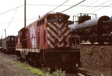 CNJ GP-7 1524 (CR 5902) waits for work outside the Elizabethport maintenance shops in July, 1977.