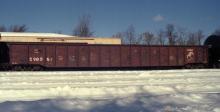 Car is ex PC and is seen here in February 1996. ORER description: Gondola, steel, fixed ends, wood and steel end lining, steel floor, axle spacing 5' 8", truck centers 56' 4.75", AAR car type code G714, mechanical designation GBS.