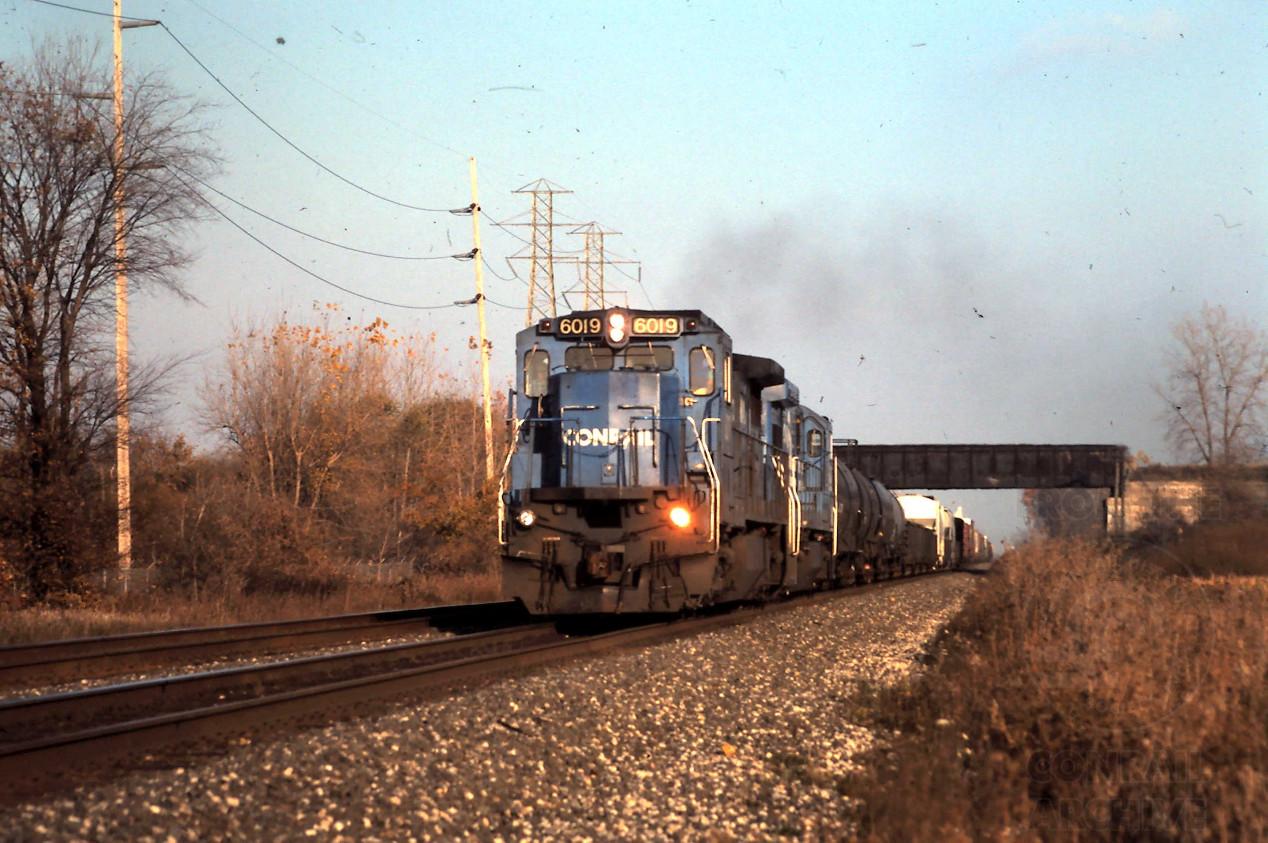 CR 6019 and friend lead PIBR-8 under the ex DT&I at Delta, OH on October 28, 1998. Chris Howe photo