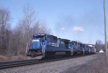 C40-8 6034 on the point of SEBO in the center of Hinsdale, MA. on April 29, 1992.