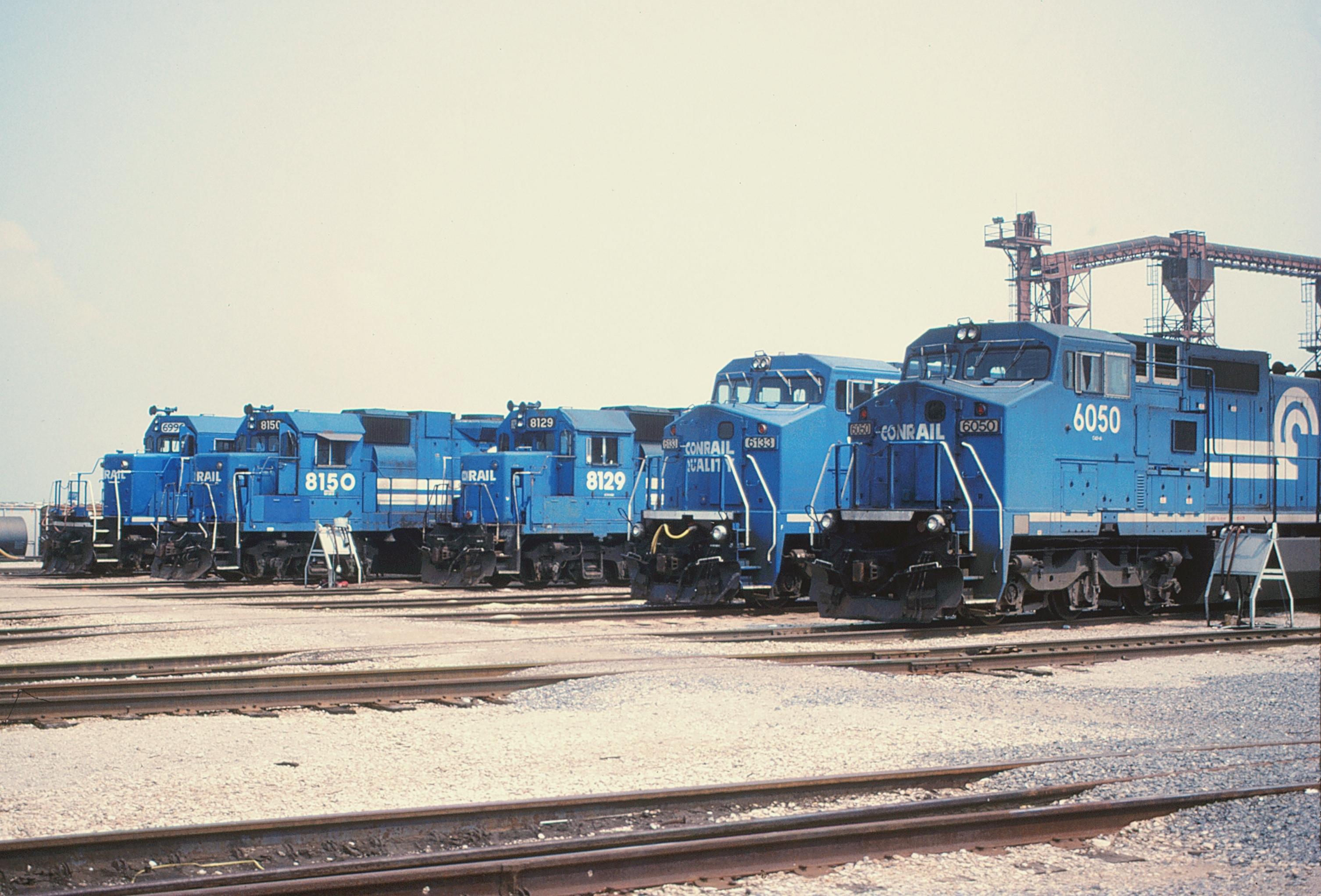 A hazy 4th of July in 1994 had this assortment of 2nd Generation EMD and GE power tied down at the engine facility in Buckeye Yard.