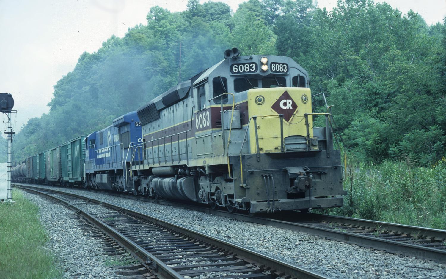 SD45 6083 and U33C 6549 lead JN-5 west on Track 2 @ Steel City, Pa
