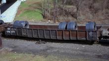 Car is seen here in April 1996 in coil steel service on Conrail train PIMO. Car is ex PRR