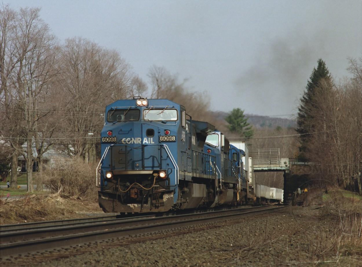The 6098 leads TV6 at MP 142 in Hinsdale, MA. on April 20, 1996.
