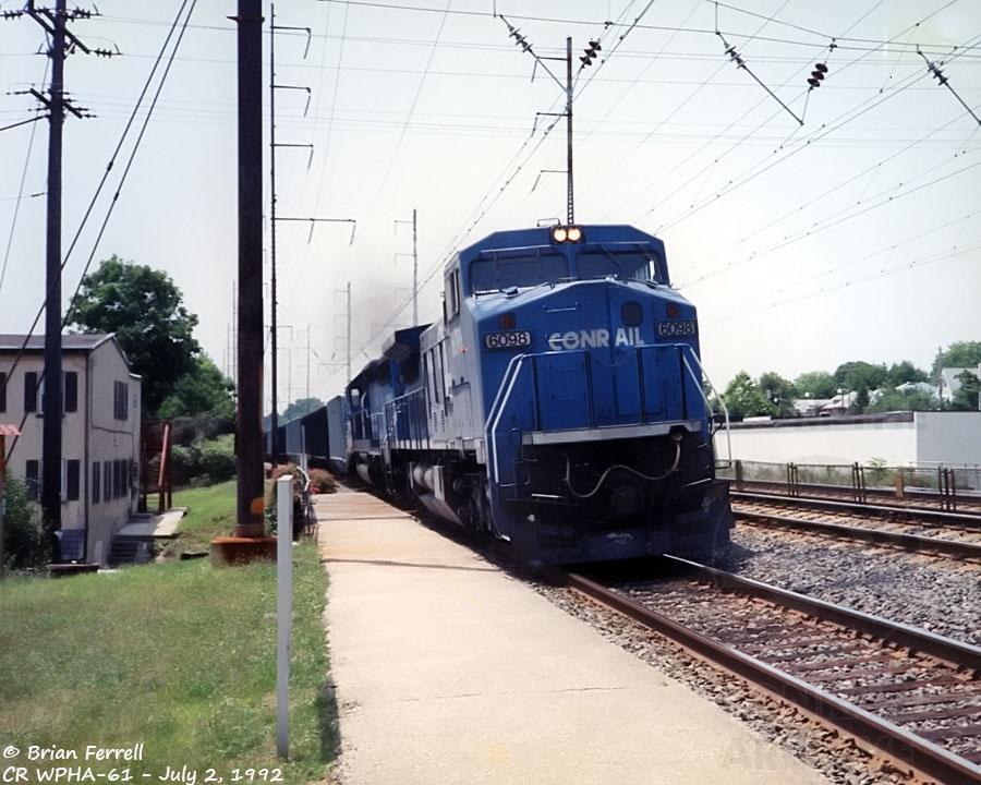 At 1:25 on this Thursday afternoon this Harrington, DE-based local heads northbound on Amtrak's Northeast Corridor with 54 empty hoppers for Dyers Quarry. Trailing engine is CR SD40-2 6510. The train weighed in at 1,728 tons.